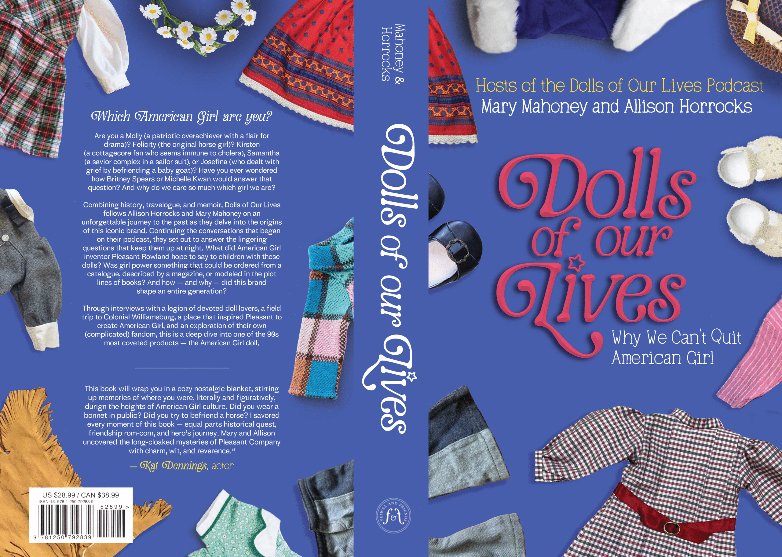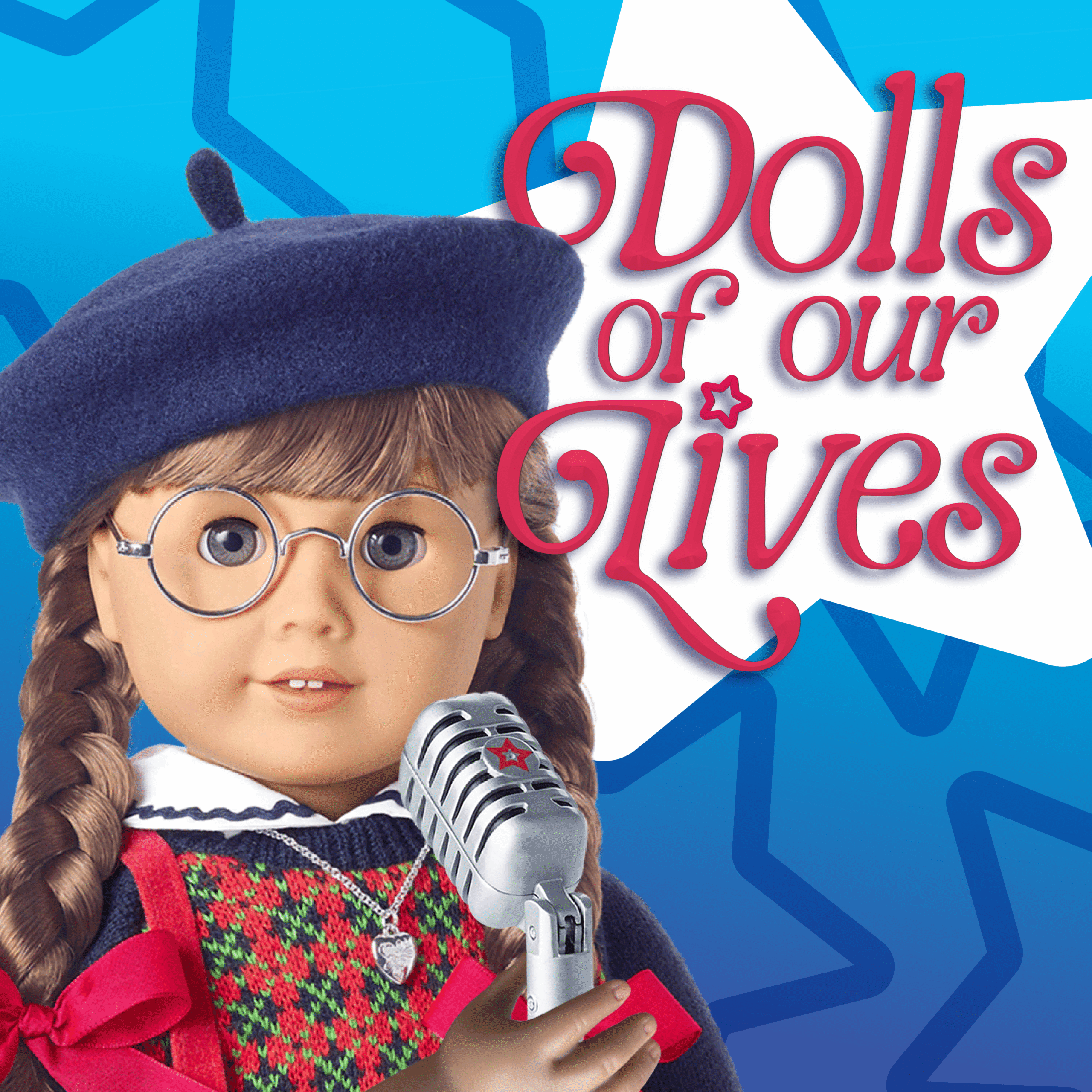 I wanted to feature the American Girl Molly front and center on the cover since the hosts describe themselves as “two Mollys” and identify so strongly with her character. The host’s voices are stronger in the podcast than in the book, so I felt that tying the podcast to one girl made sense for this while it didn’t for the book cover.